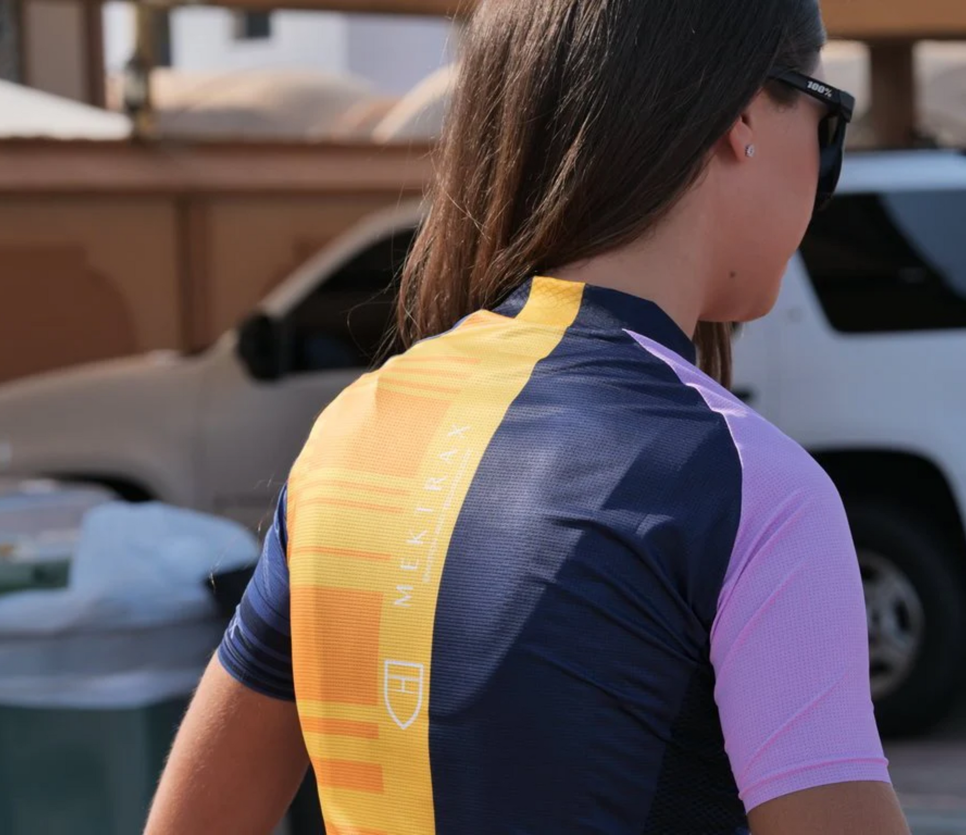 The bi-elastic 135 fabrics adheres to the body like a second skin increasing breathability and lightness of the garment, combined with raw cut sleeves and low-profile collar creates a comfortable sleek aerodynamic fit.